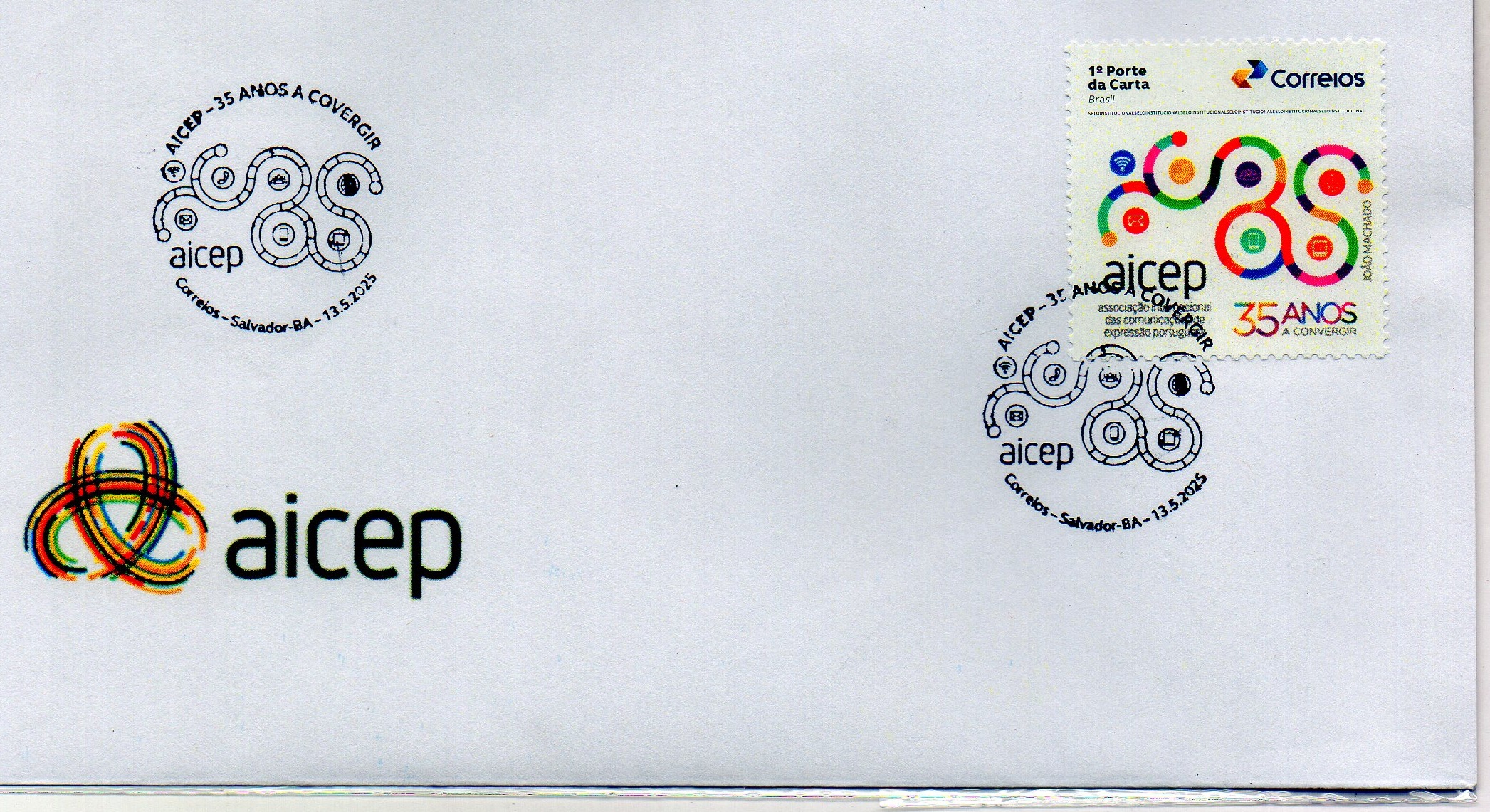 2025 35 anos da AICEP - envelope com carimbo comemorativo e SI