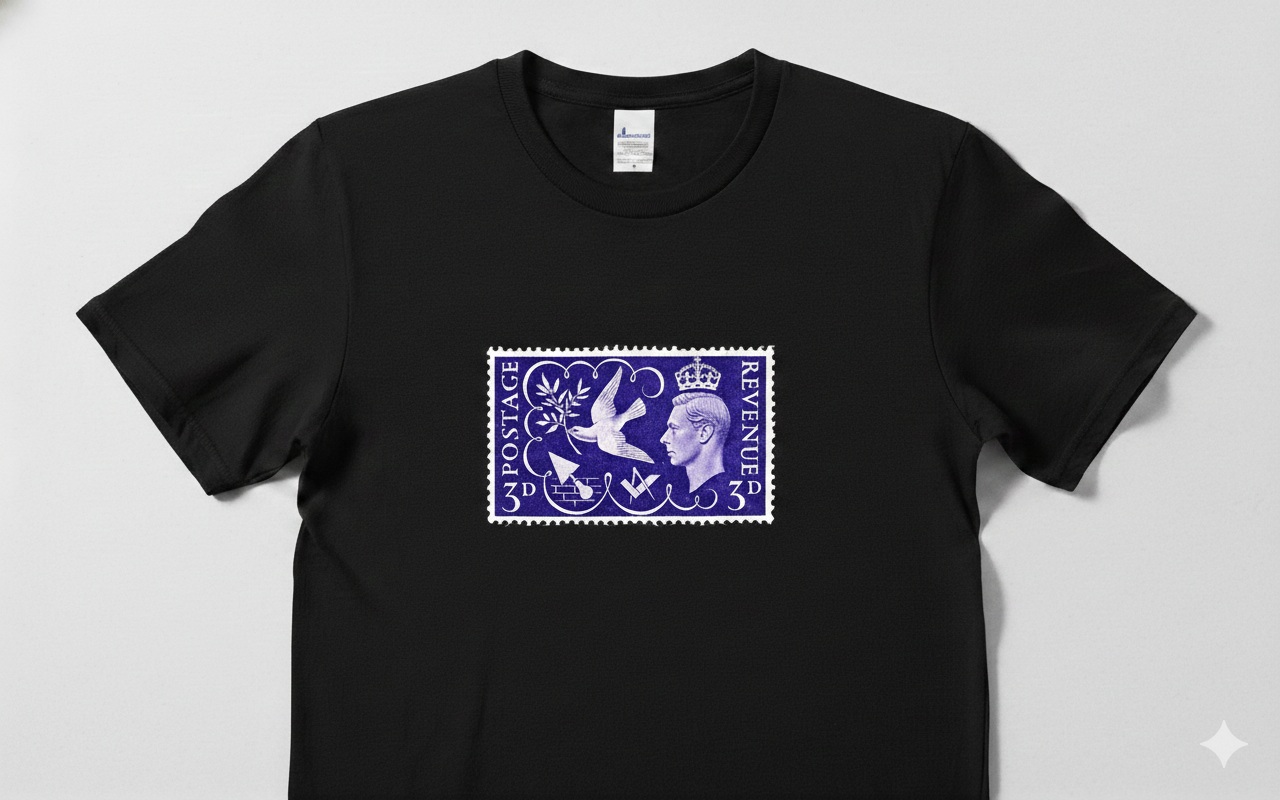 2025 Camisa Filatélica selo UK 100% algodão somente cor preta Tamanhos G e GG